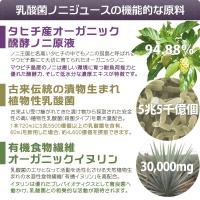 Angelbean 乳酸菌オーガニック・ノニジュースの特徴 ■タヒチ・マウピチ島産の長期発酵ノニ タヒチ・マウピチ島のノニは厳しい環境に育つ耐負荷能力と優れた醗酵力、低水分な濃厚エキスが特徴。そんな醗酵ノニが主原料(約95%)の機能強化ノニジュースです。 ■日本伝統の植物性乳酸菌 乳酸菌はアレルゲンへの影響や過敏が気になる方に大注目の健康素材です。 その中でも古来より日本に受け継がれてきた伝統の漬け物から採取した安全性の高い植物性乳酸菌を最大量配合。 ■2兆3000億個以上の乳酸菌 300mlボトル1本に2兆3千億個以上の植物性乳酸菌を含有、1回の飲用を30mlとした場合、約2300億個を摂取できます。(一般的なヨーグルト約23kg分に相当) ■有機JAS認定・無添加 機能性だけでなく安心・安全面も追求し、厳格な有機JAS認定を取得しました。 保存料・香料・着色料や甘味料・調味料・調整剤など全て無添加、水さえも一切加えておりません。 乳酸菌オーガニックノニジュースのお召し上り方 ●健康目的として1回30ml〜60mlをお薦めします。1回30mlとした場合、乳酸菌 約2,300億個、60mlなら約4,600億個、水溶性食物繊維 約2.8gを摂取できます。 ●ノニ原液約95%+乳酸菌ですので独特のノニ臭味と酸味があります。風味が気になる方は、他のフルーツジュース等と混ぜて頂くと飲みやすくなります。 ●浮遊物 ・ 沈殿物は果汁成分や乳酸菌成分ですのでよく振ってからお飲みください。 ※極めて多くの乳酸菌、さらに食物繊維が豊富です! 大量摂取すると膨満感やお腹がゆるくなることがあります。摂取目安を参考に、飲み始めは少量づつ始めてください。 内容量:720ml(1本あたり) 原材料:有機醗酵ノニ94.8%(タヒチ産)、有機イヌリン(メキシコ産) 乳酸菌末(日本産) 26品目アレルゲン物質:なし(不使用) 指定添加物:なし(不使用) 有機認証:有機JAS認定 賞味期限:製造より2年 成分表示100ml当り:熱量32kcal たんぱく質0.5g 脂質0.1g 炭水化物9.8g 食塩相当量0g 特徴成分100ml当り:・植物性乳酸菌:7,700億個(原料規格720mlあたり5兆5500億個から算出)、水溶性食物繊維(イヌリン):4.7g 販売元:株式会社ハイパーリンク |