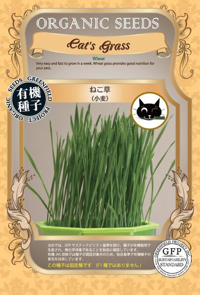 ねこ・犬等が食べるペット用の草。栽培がかんたんで、7〜10日程度で収穫できる。栄養バランスに優れた小麦のねこ草。