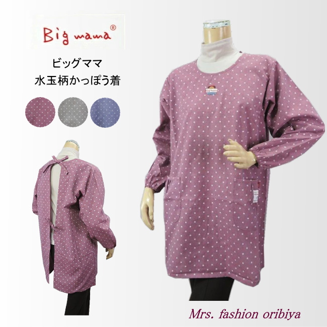 エプロン かっぽう着 割烹着 ビッグママ 水玉柄 ドット 後ろヒモ レディース ミセス オールシーズン プレゼント