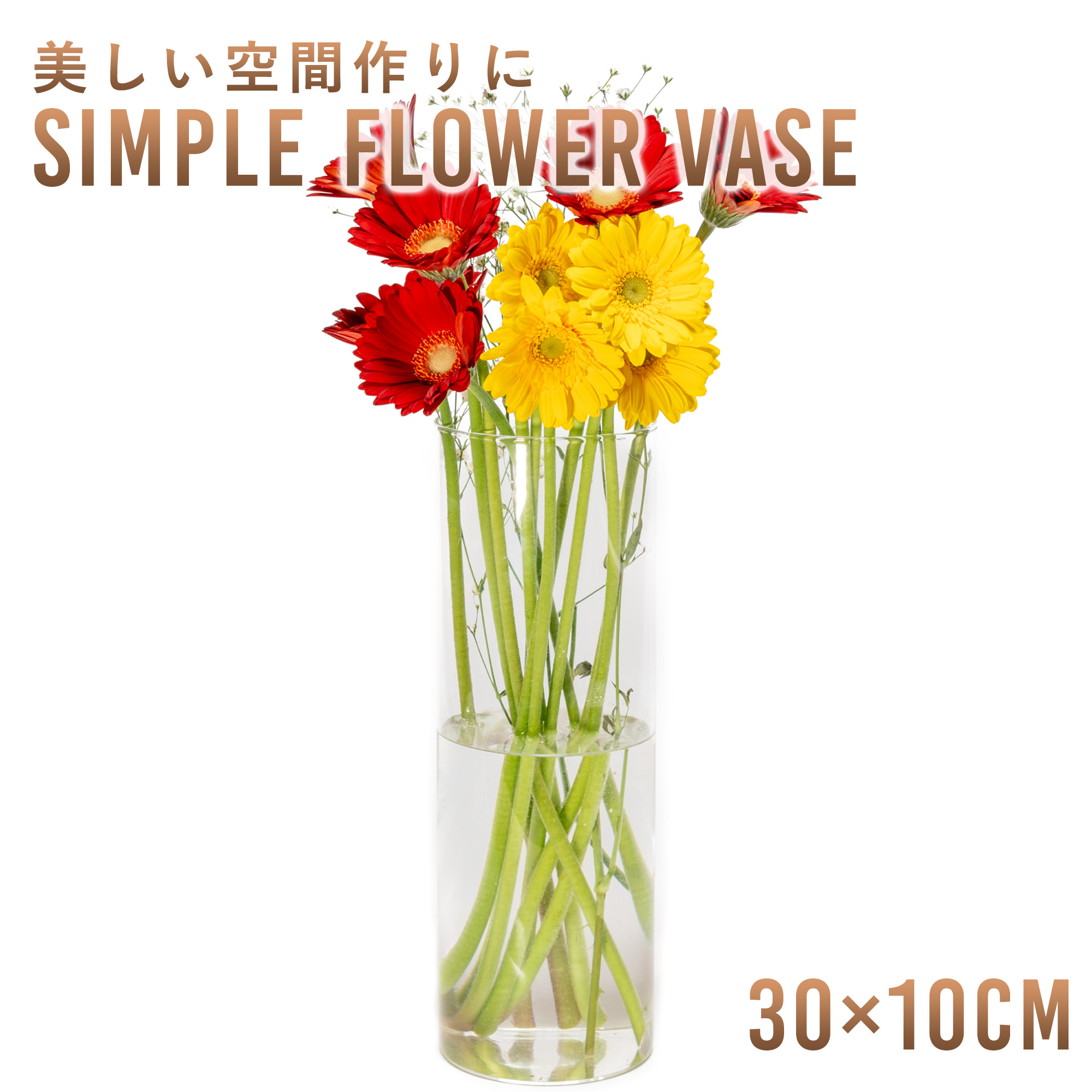 花瓶 フラワーベース 母の日 ガラス シンプル おしゃれ 直径10cm 高さ30cm 大きい サイズ 円柱 花びん 送料無料 爆買