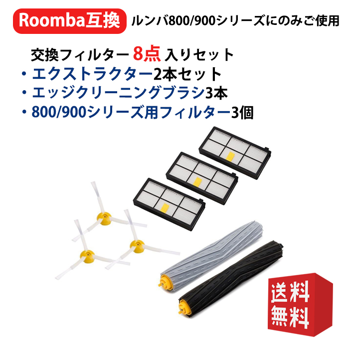 ルンバ 800 900シリーズと互換性のある消耗品セット 870 880 980 エアロブラシ エッジクリーニングブラシ ダストカットフィルター (8点セット) 互換品