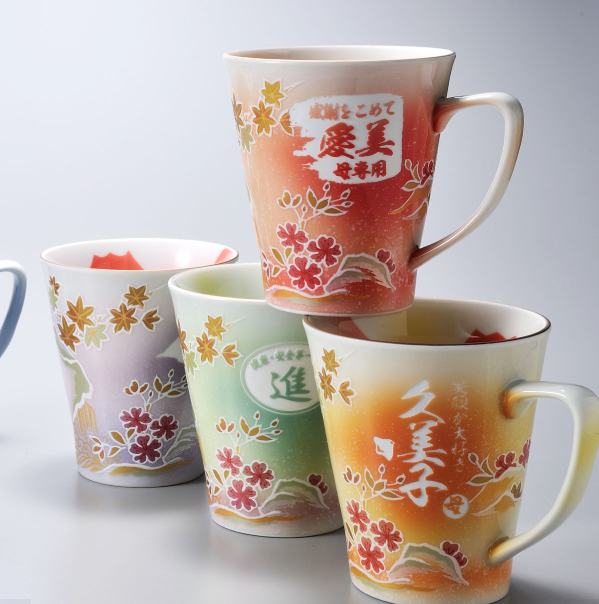 YH 名入れ ギフト 有田焼 母の日 父の日 還暦 古希 喜寿 傘寿 米寿 卒寿 白寿 百寿 有田焼 桜もみじ プレミアムマグカップ 木箱入り