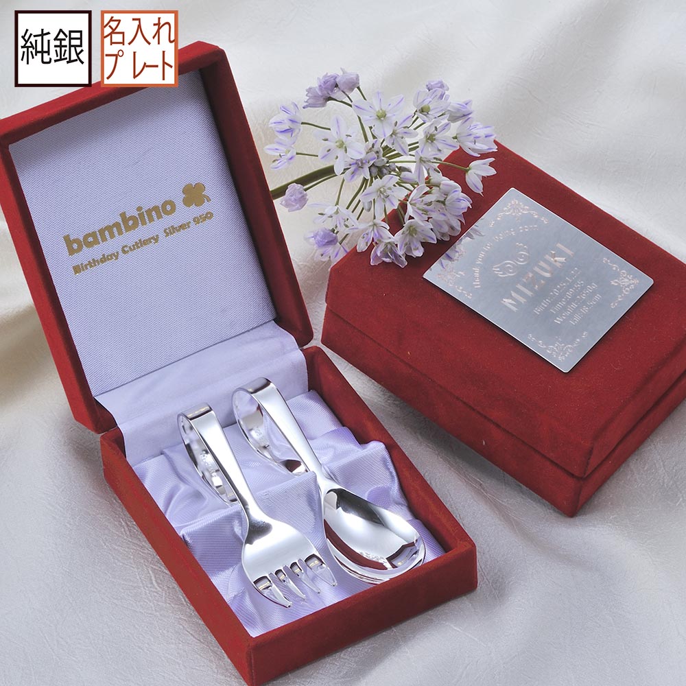 名入れ ベビーギフト MXX 銀のスプーン 食器セット 日本製 純銀ベビースプーン & フォーク オリジナルプレート付きメモリアルBOX入り / プレゼント ギフト 出産 記念 誕生日 祝い