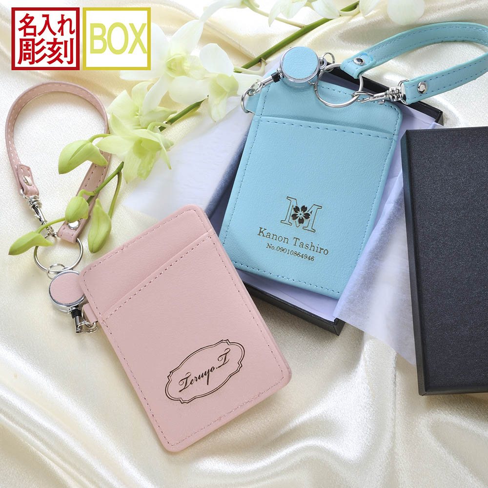名入れ ギフト LXX 定期入れ リール付きカラフルパスケース ベルト付き BOX入り