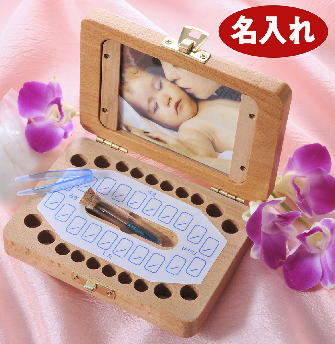 【在庫限り】名入れ LXX 記念 誕生日 祝い 男の子 女の子 出産 入園 卒園 乳歯入れ 写真入れ 木製 乳歯ケース フォトフレーム式 ギフトボックス入り