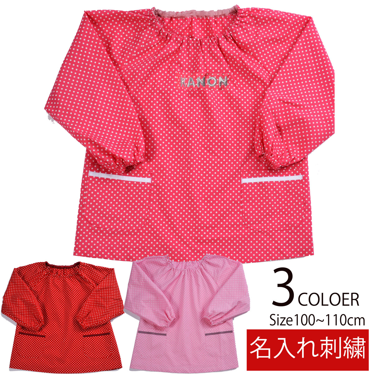 名入れ ギフト 刺繍 女の子 幼稚園 入園入学 保育園【ドット柄スモック/長袖】