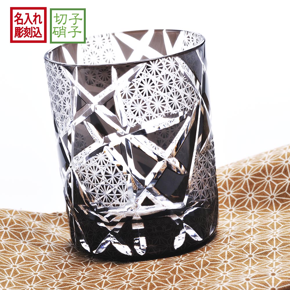 名入れ ギフト SXX 切子 江戸菱硝子 モダン紋様 オールドグラス 黒 木箱入り
