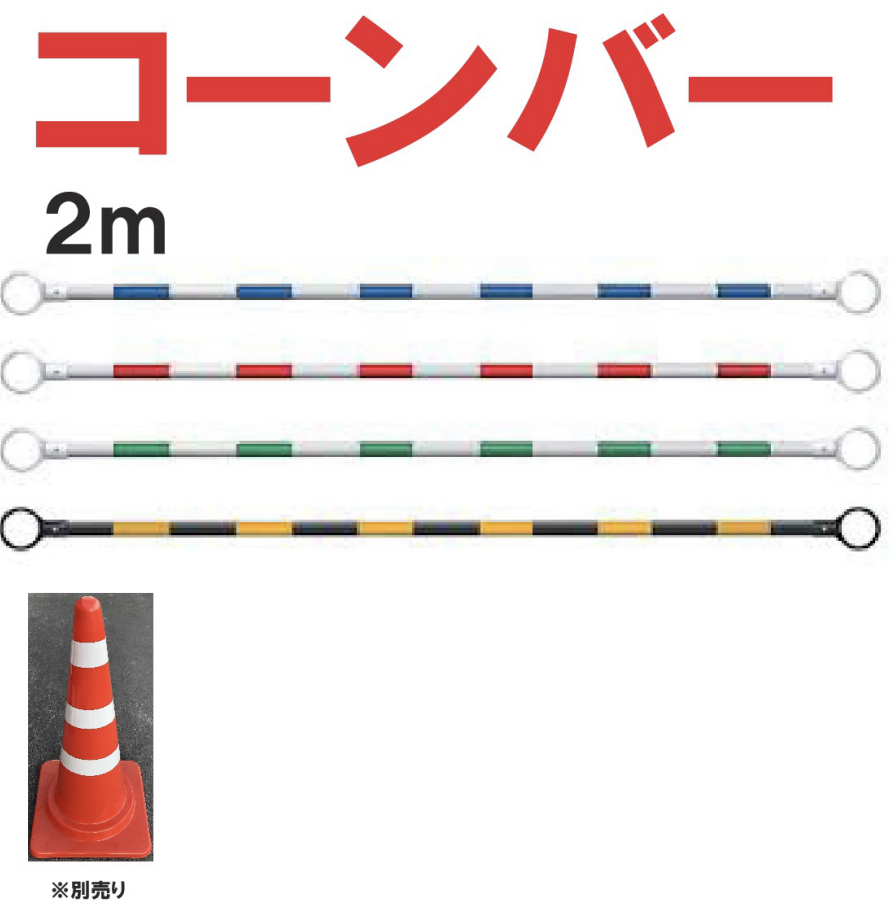 コーンバー 2m 1本 三角コーン 安全 保安 カラーコーン 工事 交通 駐車 パイロン マーカー 道路 スポーツ