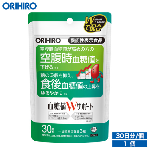 商品説明 | 2つの血糖値(空腹時血糖値、食後血糖値)をダブルでサポートする機能性表示食品 バナバ葉由来コロソリン酸による空腹時血糖値が高めの方の空腹時血糖値を下げる機能と、サラシア由来サラシノールによる糖の吸収を抑えて食後血糖値の上昇をゆるやかにする機能の、2つの機能性を表示しております。タブレットタイプ。 |