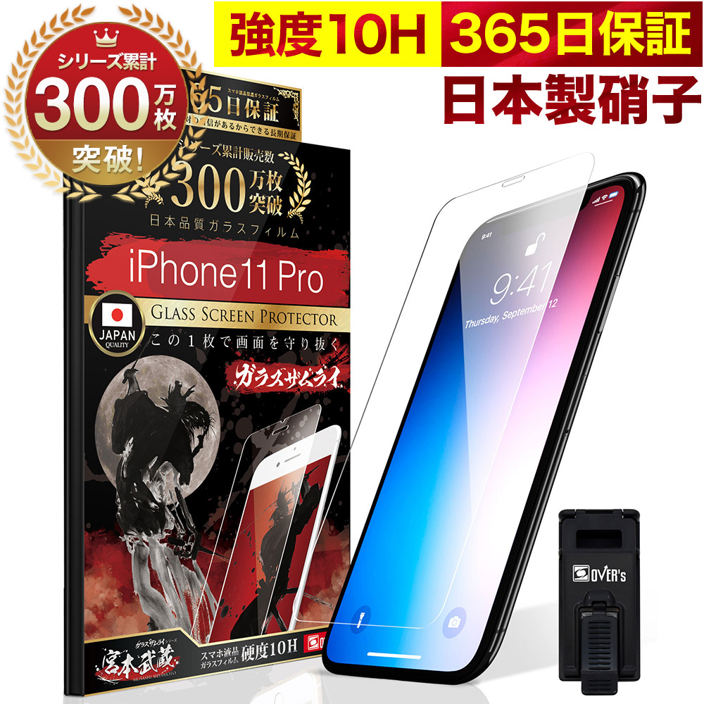 iPhone11 Pro ガラスフィルム 保護フィルム 10Hガラスザムライ らくらくクリップ付き アイフォン アイホン iPhone11pro フィルム