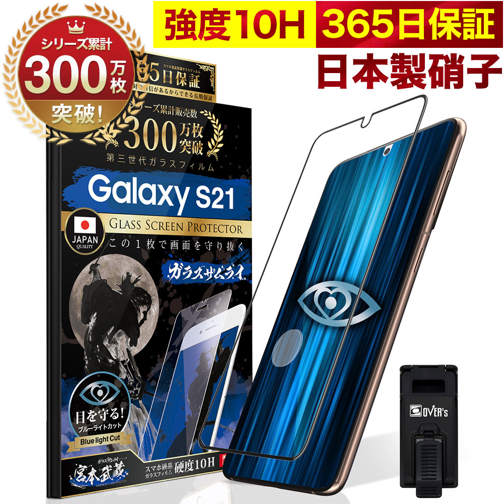 Galaxy S21 5G ガラスフィルム 全面保護フィルム 指紋認証対応 ブルーライトカット 10Hガラスザムライ ギャラクシー SC-51B SCG09 フィルム 黒縁