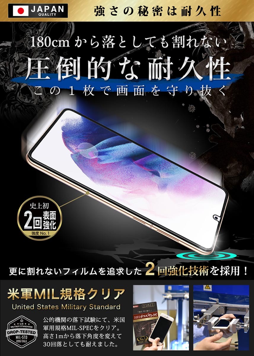 【 10H ガラスフィルム 〜 高さ1mから落ちても割れない 】