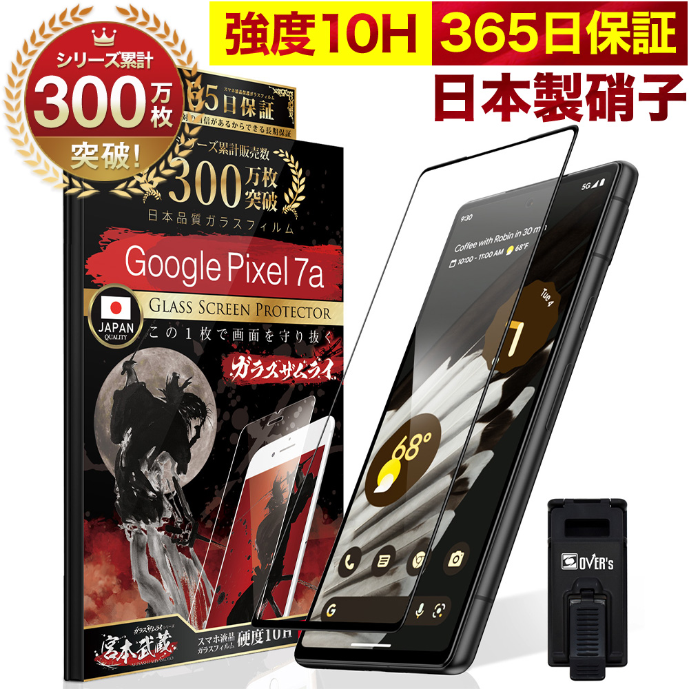 Google Pixel7a フィルム グーグル ピクセル7a ガラスフィルム 全面 保護フィルム 10Hガラスザムライ らくらくクリップ付き フィルム 黒縁