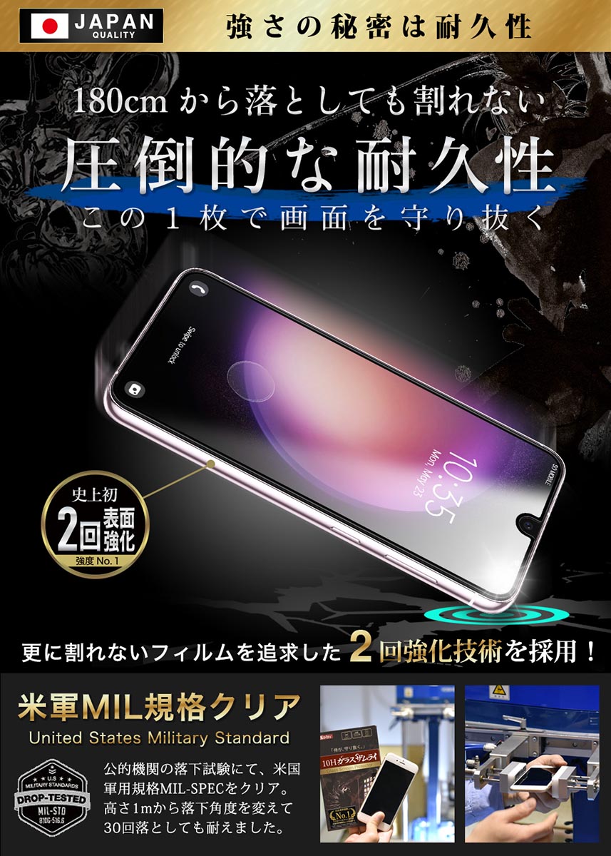 【 10H ガラスフィルム 〜 高さ1mから落ちても割れない 】