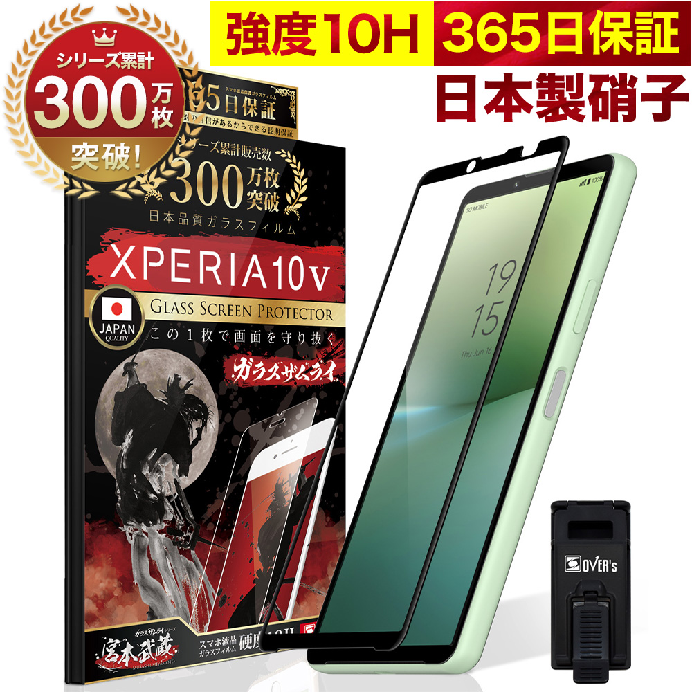 Xperia 10 V ガラスフィルム 全面保護フィルム SO-52D SOG11 SO52D 10Hガラスザムライ らくらくクリップ付き エクスペリア10 フィルム 黒縁