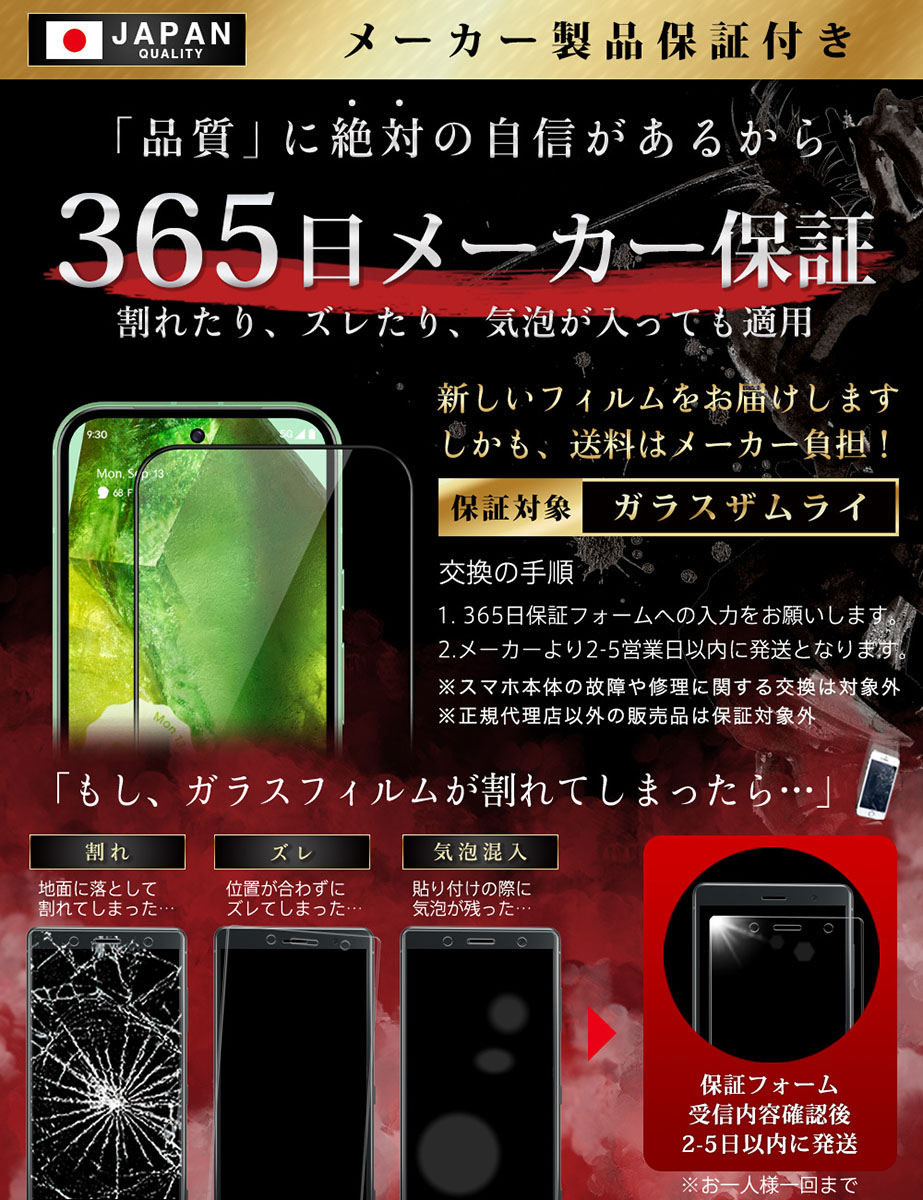 「フィルムって貼るのが難しい… 」 という悩みがありました。「誰でも簡単に、ズラさず貼るには?」 を考え、誰でもキレイに貼れるように「らくらくクリップ」を開発しました。実用新案取得済み【 ● らくらくクリップ が付属! 】ガラスザムライと一緒にお届けします。