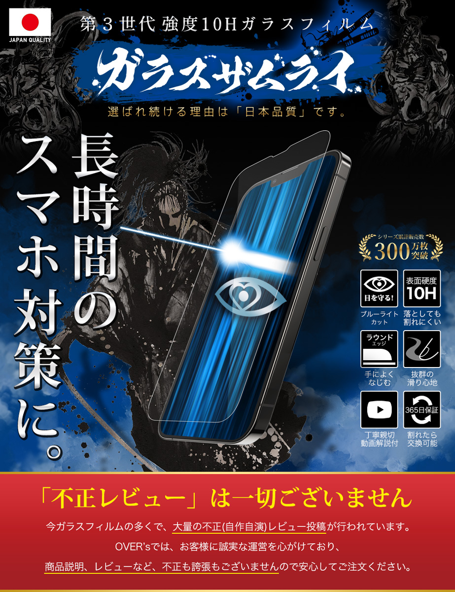 移動中の電車で、寝る前の暗闇で、ゲームのやりすぎで、ブルーライトを浴び続けると「目の痛み」「肩こり」「頭痛」を引き起こし、体全体に悪影響を与えます。 今日からできる "ブルーライト対策" を、ガラスザムライで。