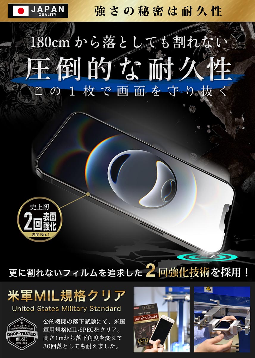 【 10H ガラスフィルム 〜 高さ1mから落ちても割れない 】