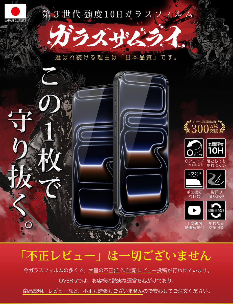 「フィルムって貼るのが難しい… 」 という悩みがありました。「誰でも簡単に、ズラさず貼るには?」 を考え、誰でもキレイに貼れるように「らくらくクリップ」を開発しました。実用新案取得済み【 ● らくらくクリップ が付属! 】ガラスザムライと一緒にお届けします。