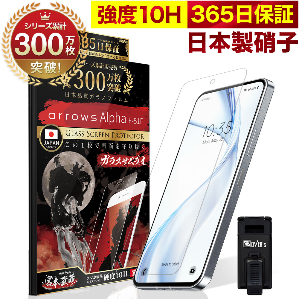 arrows Alpha F-51F ガラスフィルム 保護フィルム 10Hガラスザムライ らくらくクリップ付き ARROWS アローズ フィルム
