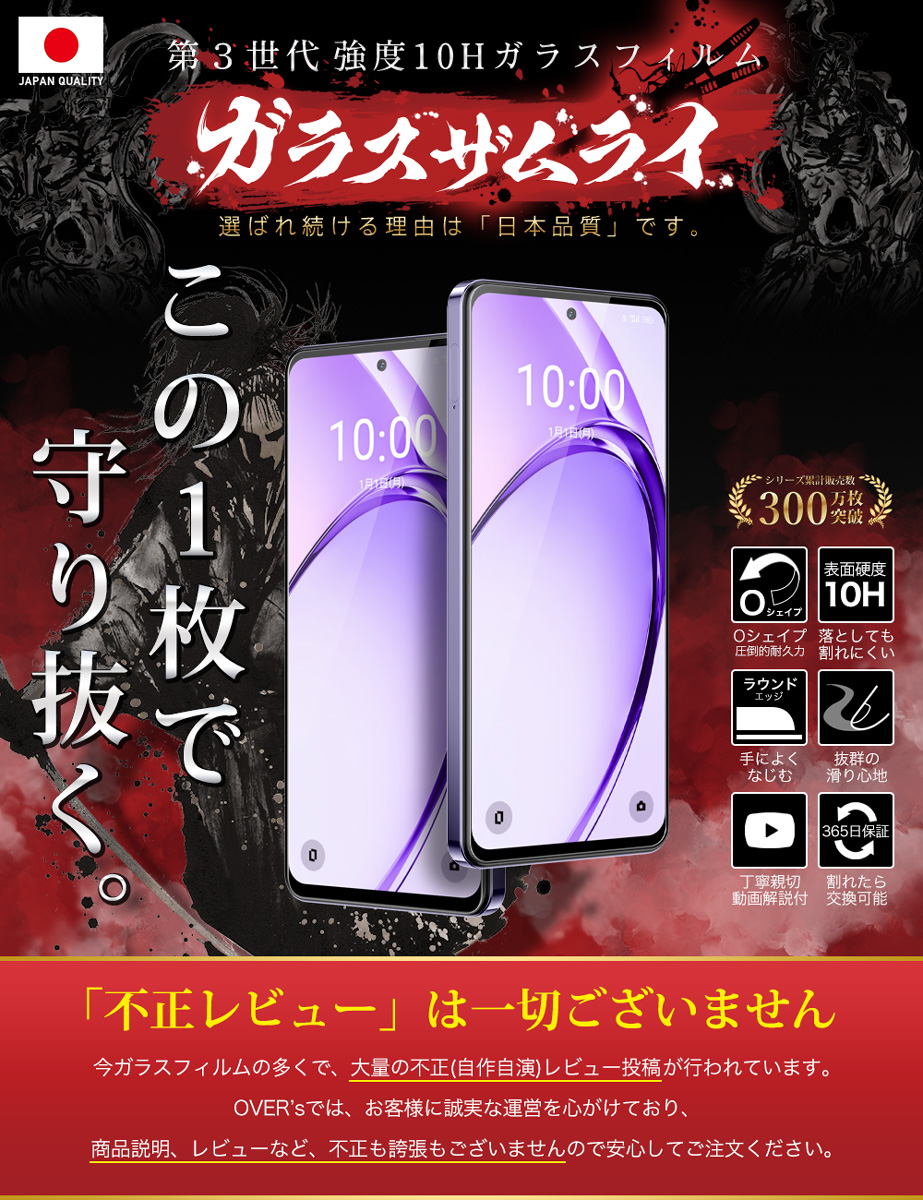 OPPO A3 5G ガラスフィルム 保護フィルム 10Hガラスザムライ らくらくクリップ付き oppo オッポ フィルム