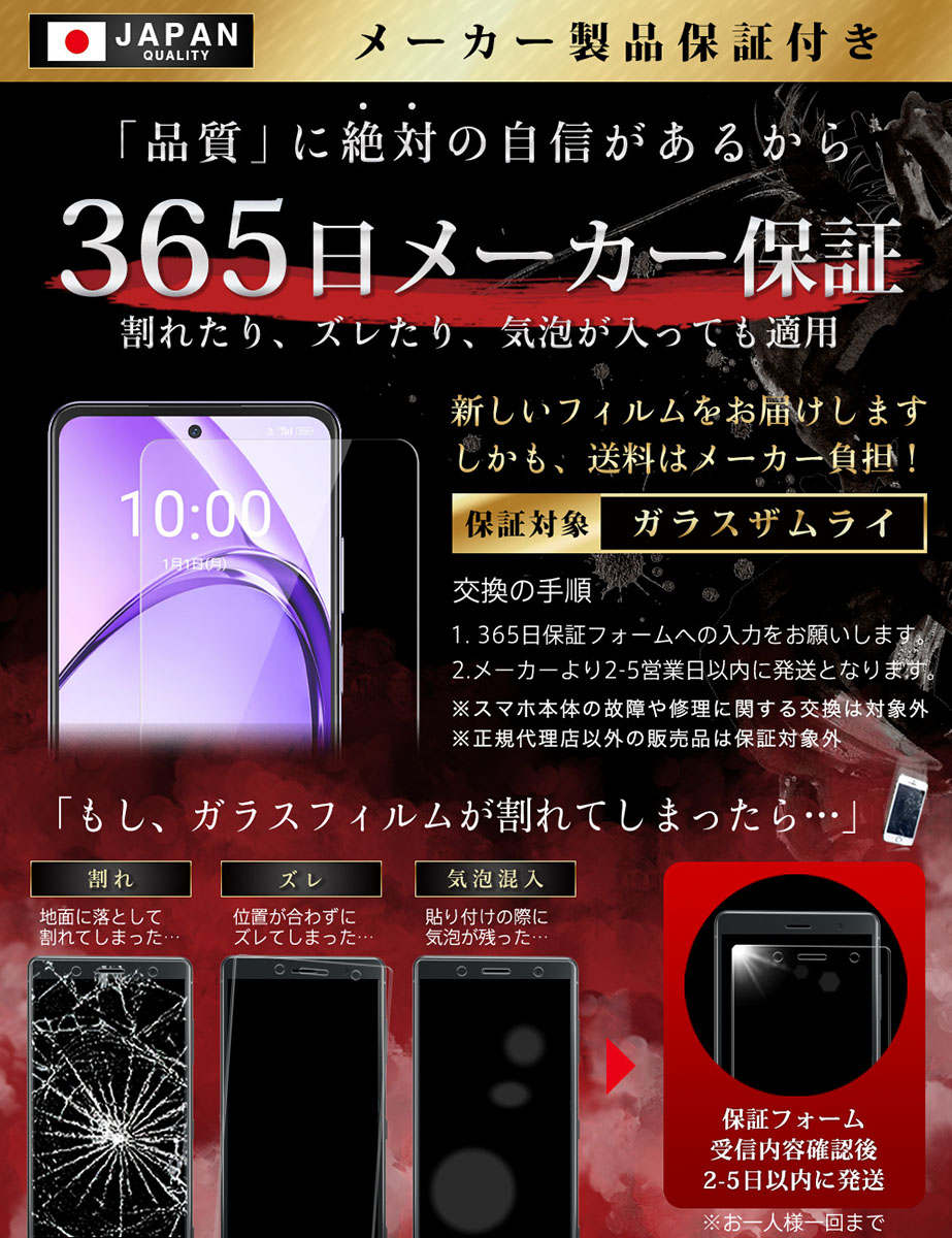 「フィルムって貼るのが難しい… 」 という悩みがありました。「誰でも簡単に、ズラさず貼るには?」 を考え、誰でもキレイに貼れるように「らくらくクリップ」を開発しました。実用新案取得済み【 ● らくらくクリップ が付属! 】ガラスザムライと一緒にお届けします。