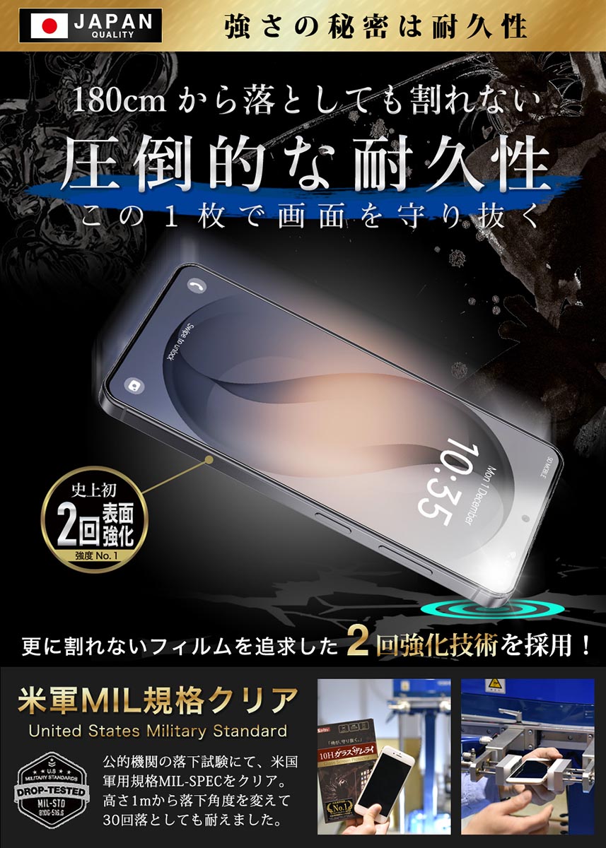 【 10H ガラスフィルム 〜 高さ1mから落ちても割れない 】