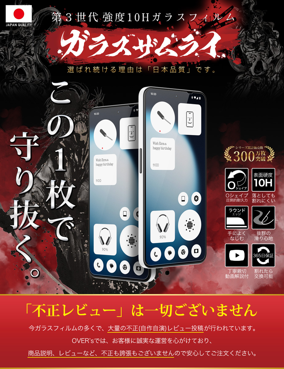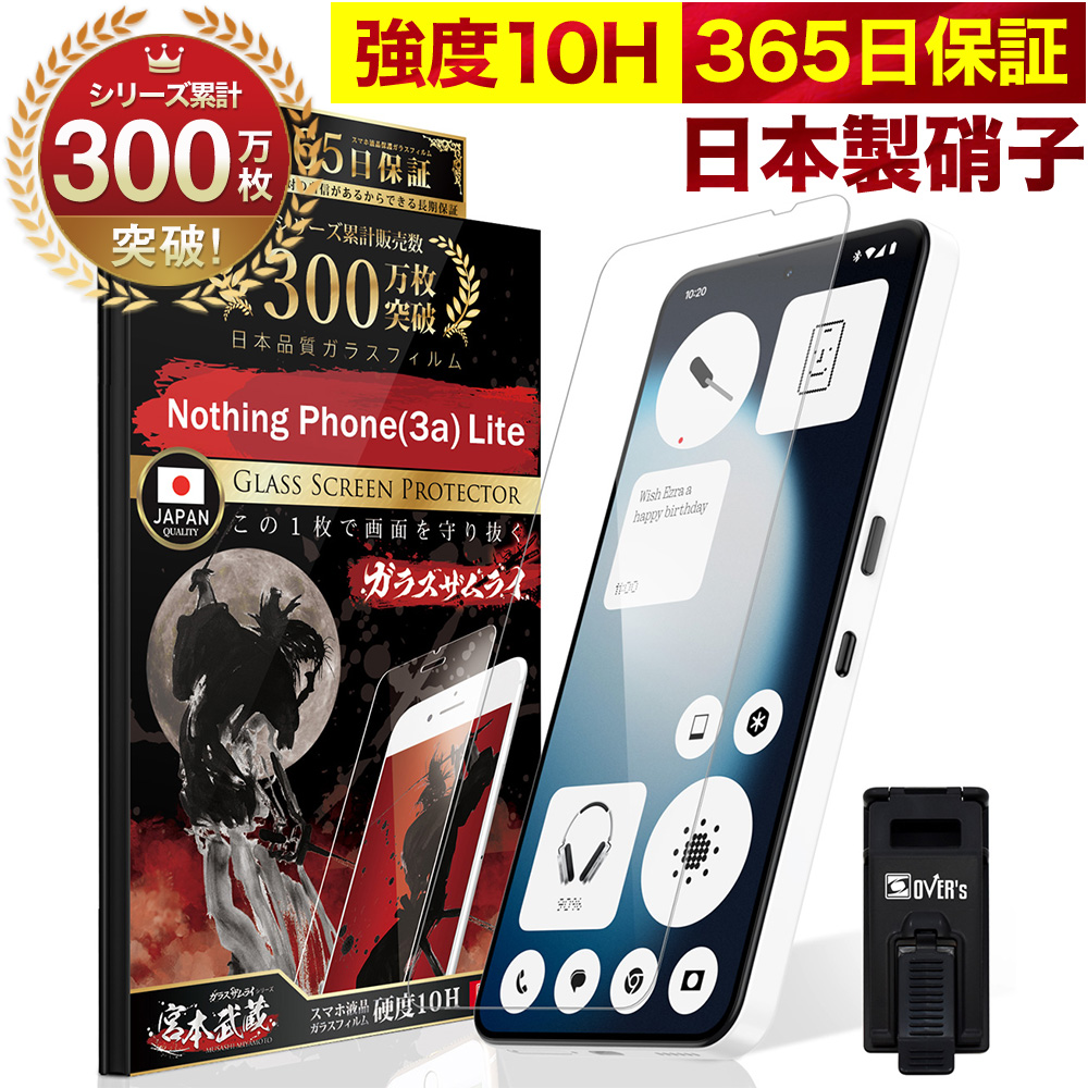 Nothing Phone 3a Lite ガラスフィルム 保護フィルム 10Hガラスザムライ らくらくクリップ付き フィルム