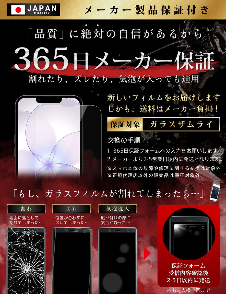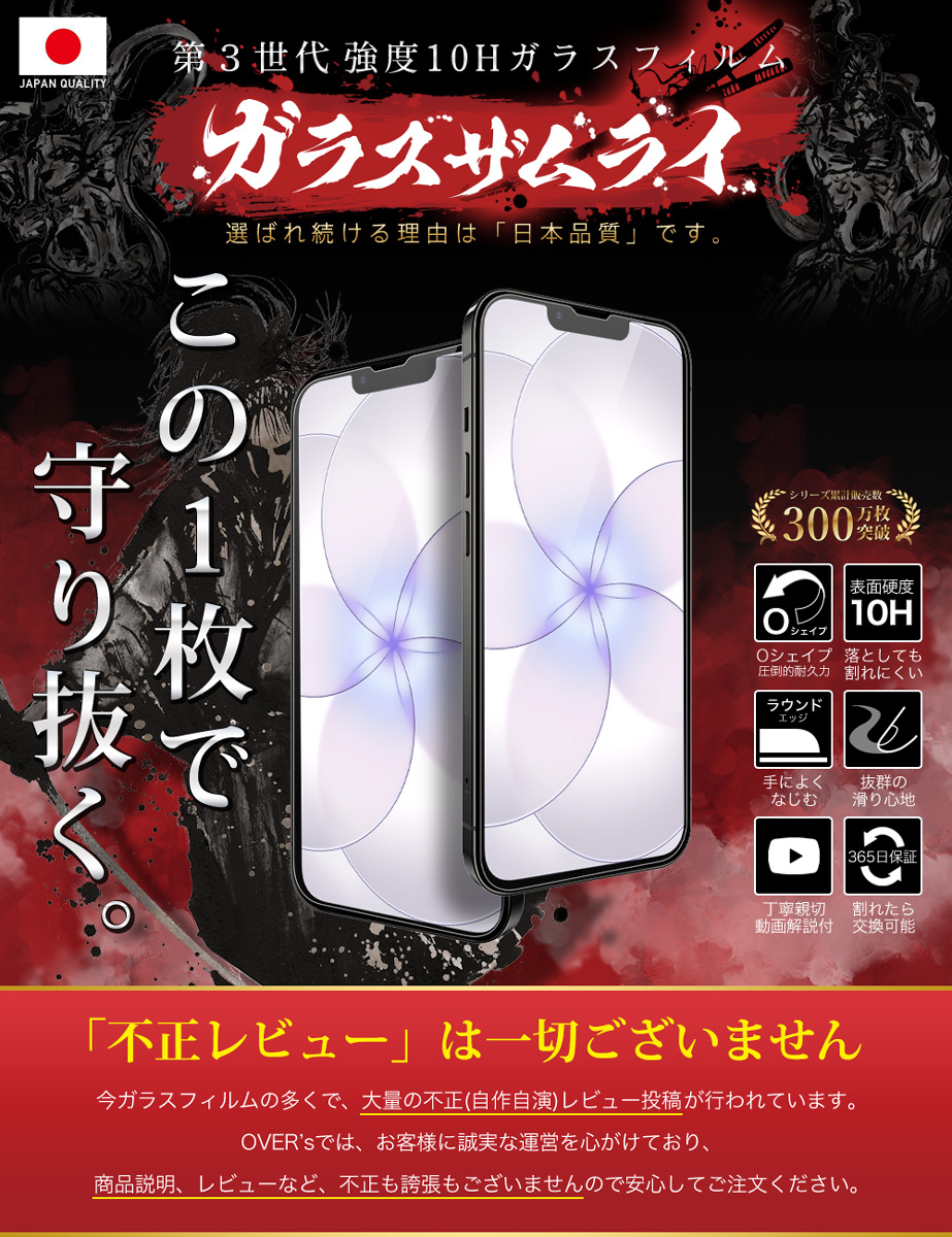 「フィルムって貼るのが難しい… 」 という悩みがありました。「誰でも簡単に、ズラさず貼るには?」 を考え、誰でもキレイに貼れるように「らくらくクリップ」を開発しました。実用新案取得済み【 ● らくらくクリップ が付属! 】ガラスザムライと一緒にお届けします。
