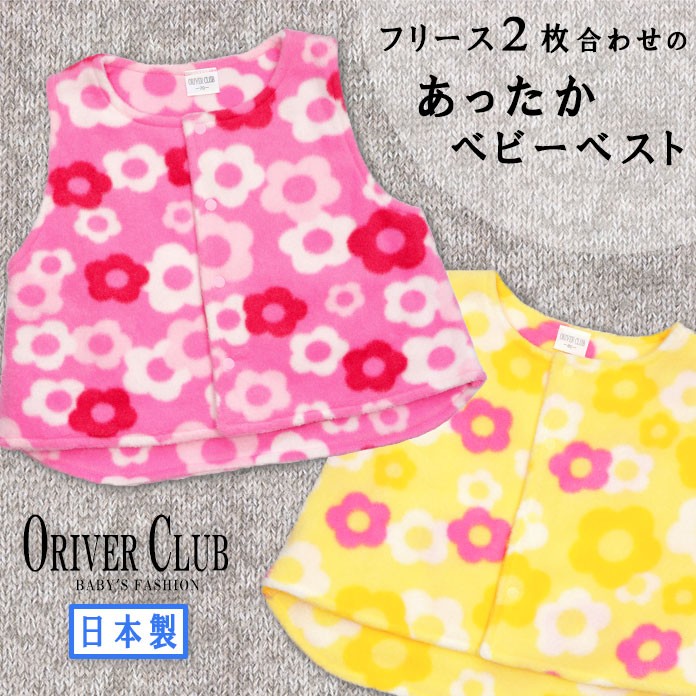 ORIVERCLUB(オリバークラブ) 日本製 子供服 ベビー 新生児 ベスト 女の子 花柄 ピンク 黄色 70 80 90 95 (55313)