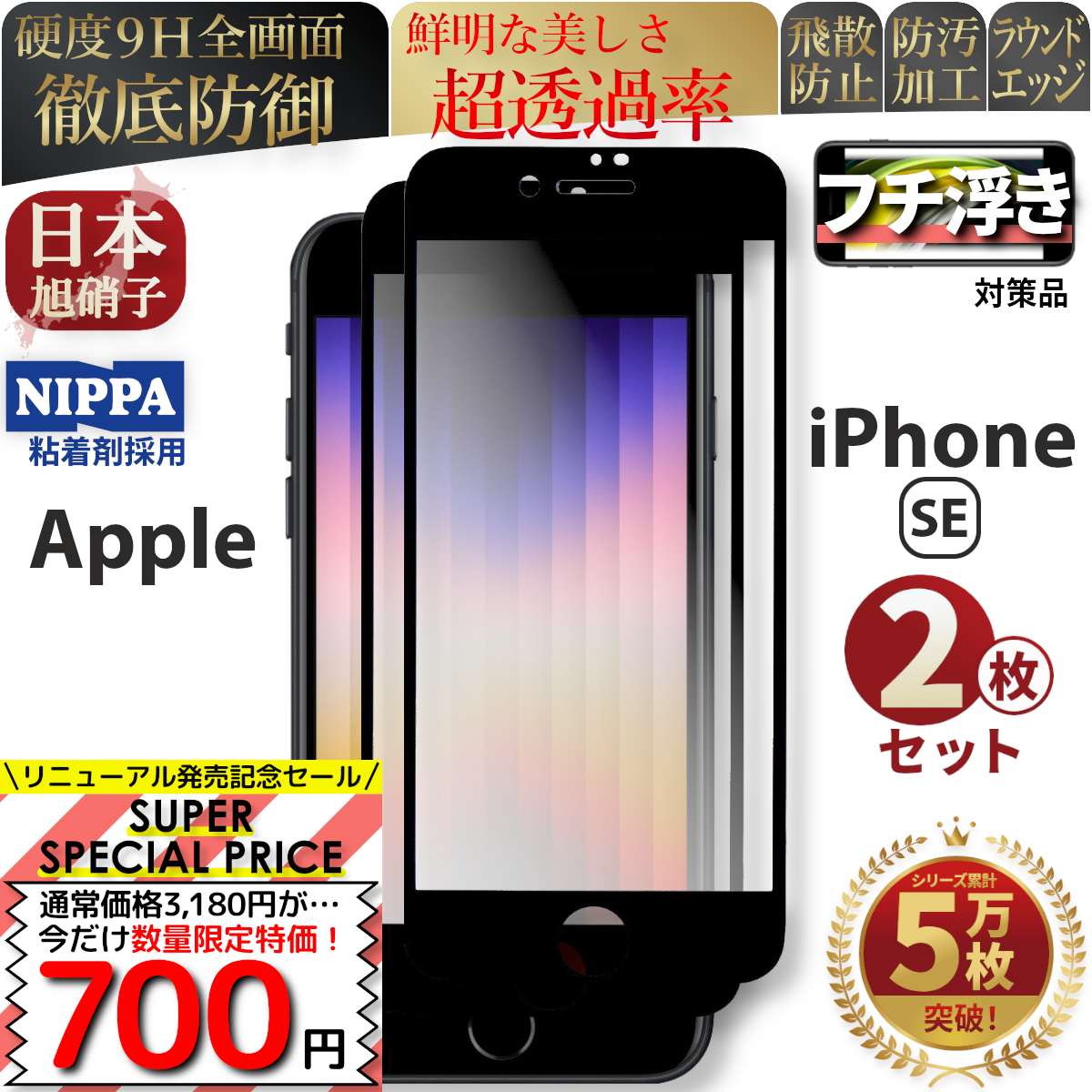 iPhone SE フィルム ガラスフィルム アイフォン SE3 第3世代 保護フィルム SE2 第2世代 全面保護 2枚セット 爆買