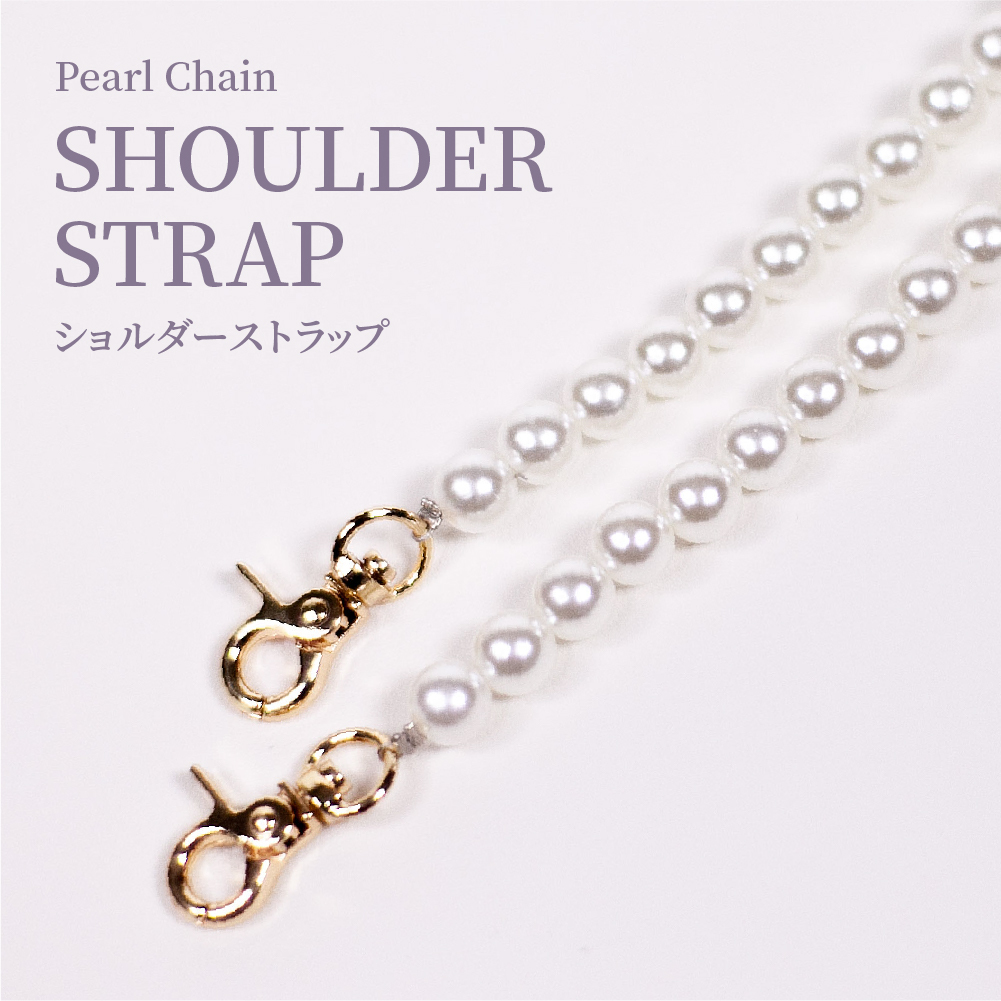 おしゃれなパールチェーンストラップです。多彩な用途に使用可能で様々なバッグに使用できるよう、留め具の開口部を大きくしております。