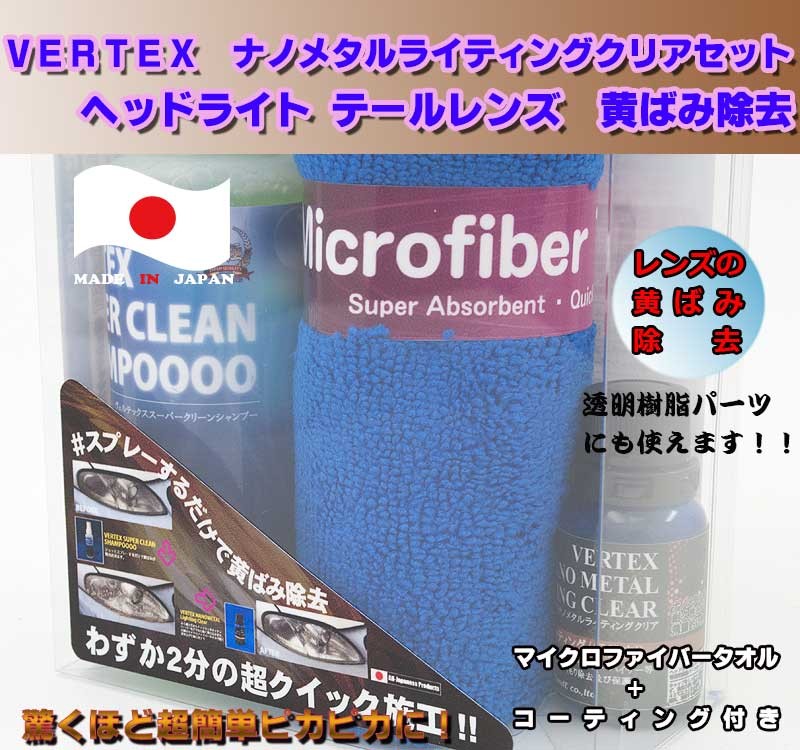 VERTEX ナノメタルライティングクリアセット レンズ黄ばみ除去 透明樹脂パーツ黄ばみ除去 ヘッドライト テールランプ掃除 ウインカー掃除 バイザー掃除