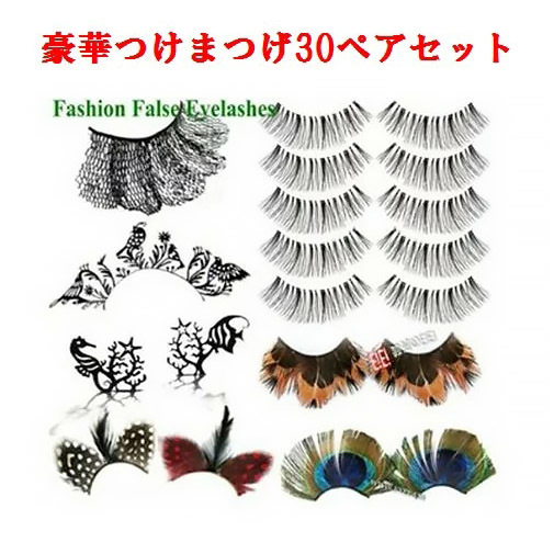豪華つけまつげ30ペアセット お買い得 福袋 つけまつ毛 成人式 ハロウィン クリスマス パーティー イベント ポイント デザイン 羽根 紙 キラキラ かわいい