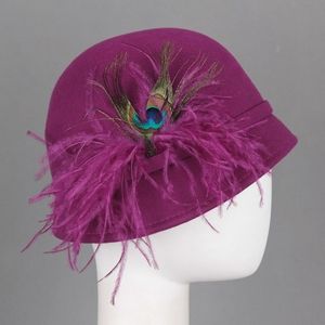 Wool Hat 欧米風 セレブ ウール ハット 羽根 羽 女優帽 小顔帽子 花 レディ-ス 帽子 女優帽 秋冬 cap 帽 Xmas クリスマス パーティー MA6800832