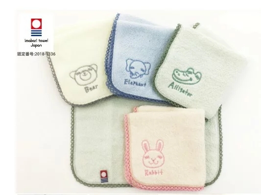 【日本製】PGハンカチ コットン くま ベア うさぎ ぞう わに はんかち タオル たおる 汗 吸水 速乾 乳歯 お手入れ スタイ 食事 エプロン 洗濯 清潔 かわいい