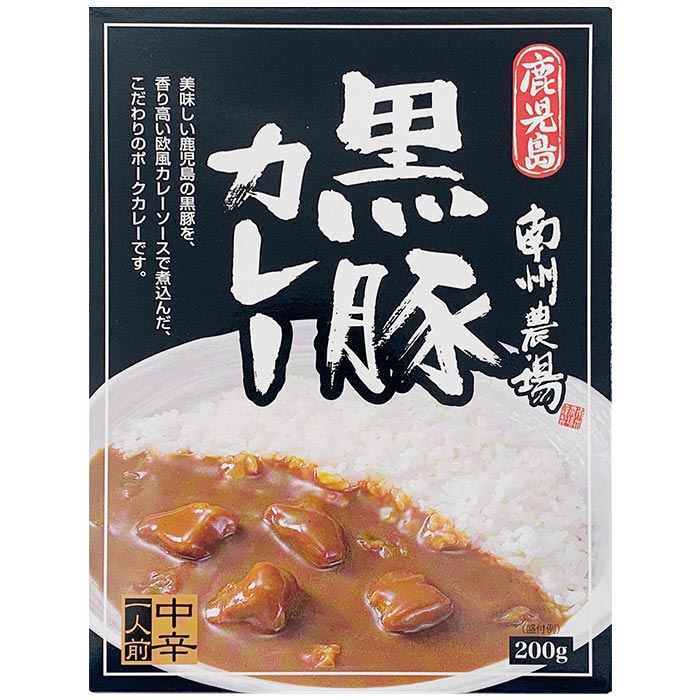 黒豚肉(鹿児島県産)、たまねぎ、小麦粉、砂糖、ラード、清酒、リンゴピューレ、チャツネ、カレー粉、食塩、生クリーム、ポークエキス、ウスターソース、乳等を主要原料とする食品、香辛料、トマトペースト、脱脂粉乳/増粘剤(加工デンプン)、調味料(アミノ酸等)、着色料(カラメル、カロチン)、香辛料抽出物、酸味料、香料、(一部に小麦・乳成分・大豆・豚肉・りんごを含む)