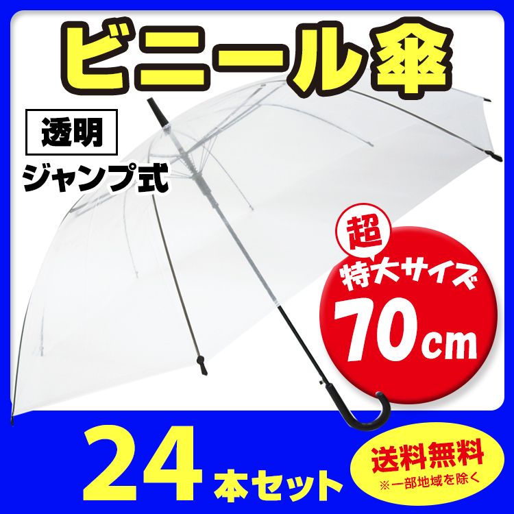 即納 ビニール傘 70cm (超特大サイズ) 透明 ジャンプ式 24本セット(0.5c/s)