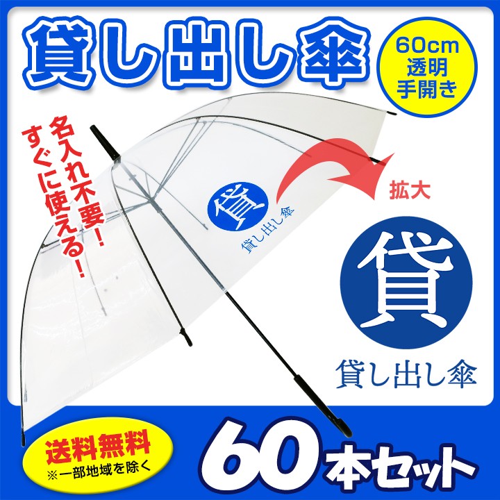 貸し出し傘 60cm 透明 手開き 60本セット(1c/s)