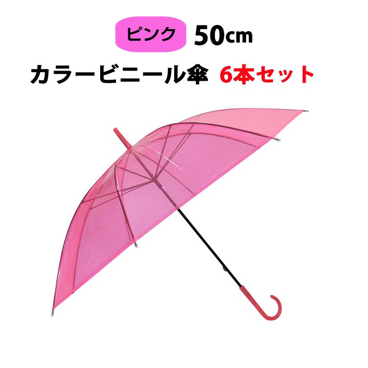■ピンク ビニール傘 50cm■ビニール傘50cm カラー ピンク 手開き式 8本骨 6本セット 送料無料 ※沖縄・離島は別途送料が発生いたします。