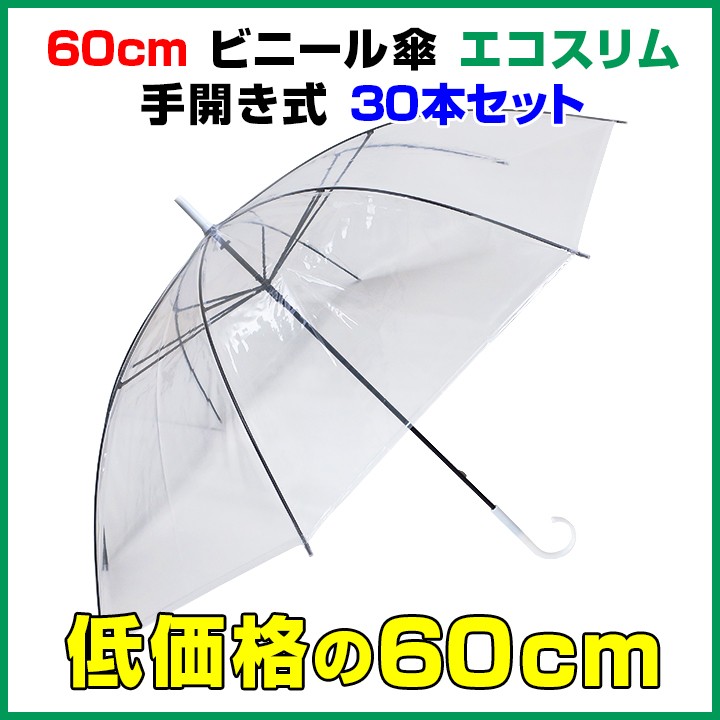 60cmビニール傘 エコスリム 手開き式 30本セット 送料無料 沖縄・離島除く