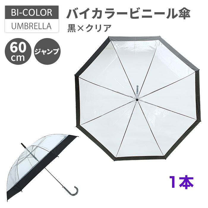 ビニール傘 60cm ワンタッチジャンプ * バイカラービニール傘 60cm 黒×クリア 1本 *