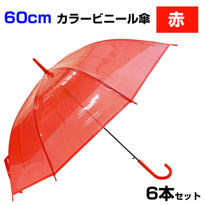 60cm カラービニール傘 赤 6本セット カラー傘 ジャンプ式