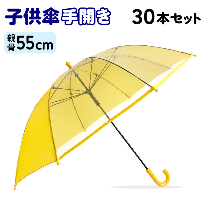 子供傘 55cm 手びらき傘 安全カバー付 2面透明窓 30本セット
