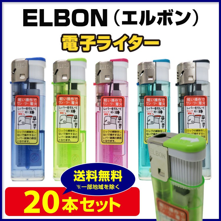 リーイン エルボン 使い捨てライター二段階着火方式 ELBON(エルボン)電子ライター D-72CR 20本セット(20p×1) CR対応 100円ライター 業務用ライター