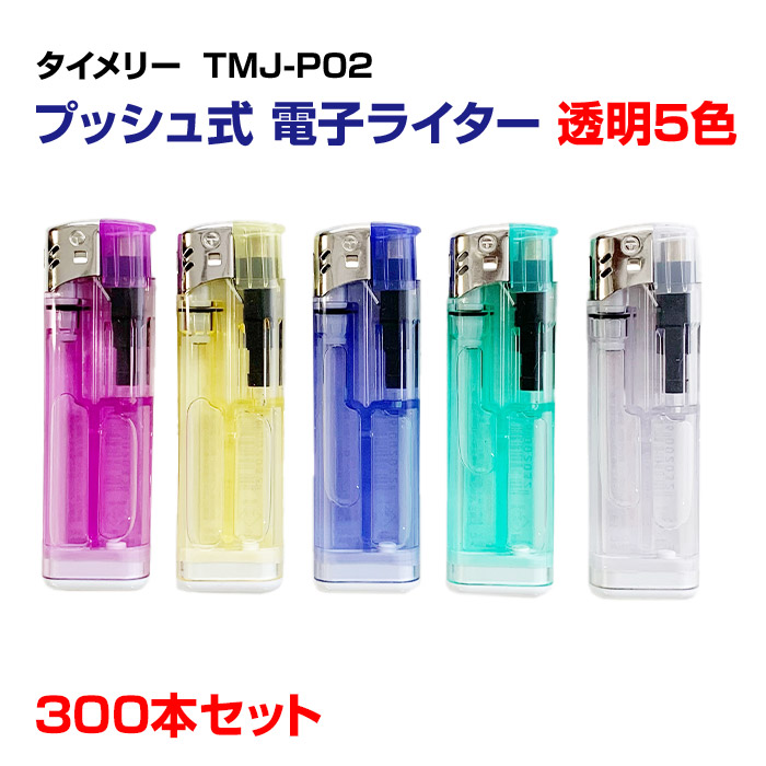 タイメリー TMJ-P02 プッシュ式電子ライター 透明 5色