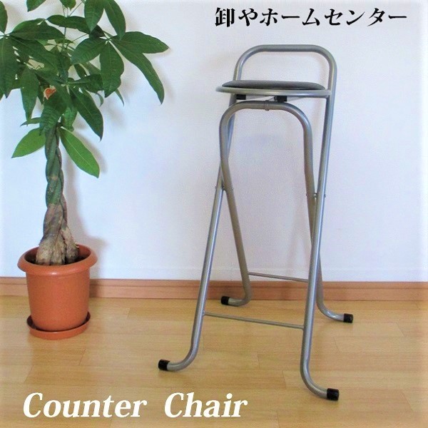 カウンターチェア 折りたたみ バーチェア パイプ椅子 高さ81cm 背もたれ付き フォールディングチェア 軽量 合皮 クッション ブラック シルバー 黒 or-038