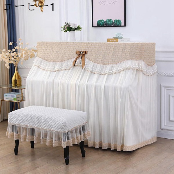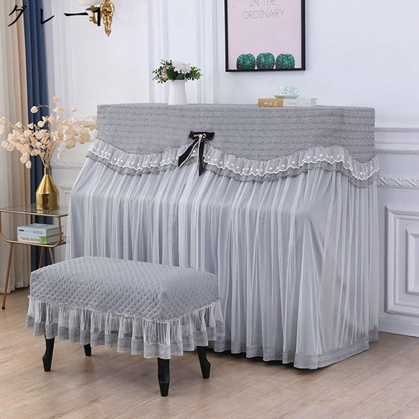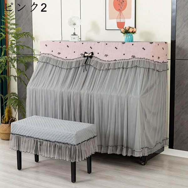 ピアノカバー アップライトピアノカバー フルカバー ノルディック風 可愛い 蝶結び レース ピアノ掛け 遮光 防塵 軽量 汚れ防止