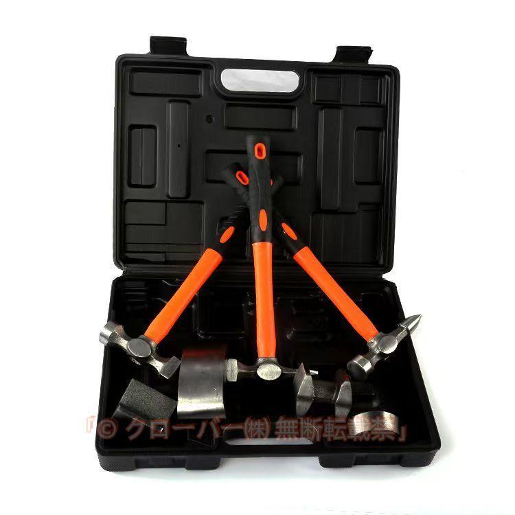 板金ハンマー 板金用ハンマー ドーリー ハンマー専用ケース付 金属加工セット 7pcs 金づち 赤 修復 修理 バンパー凹みリペア ピークル 金属加工初心者向け