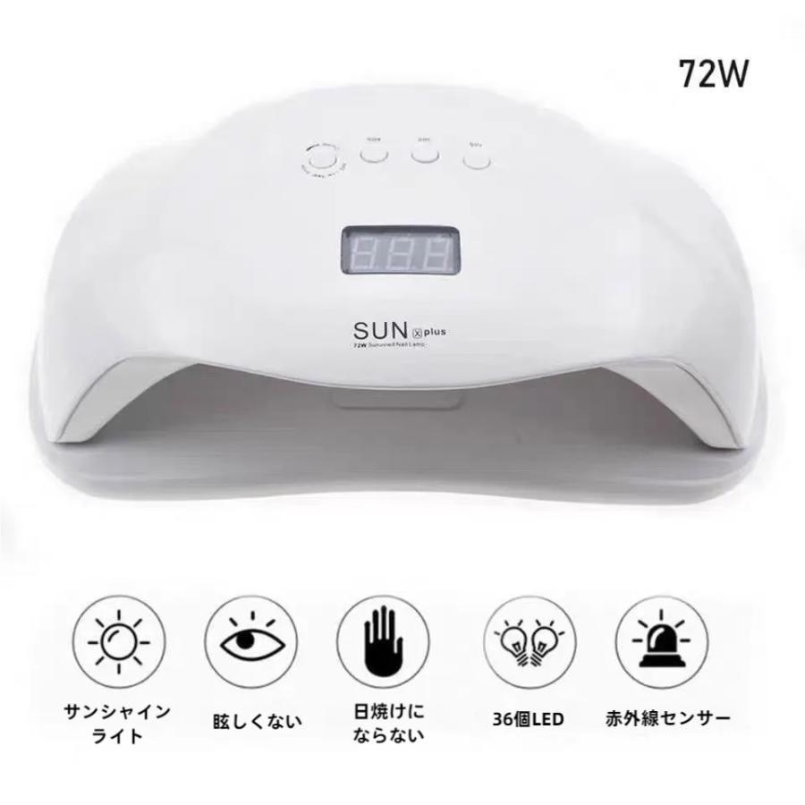 ジェルネイルUV+LED72Wライト人感センサー液晶付ピークルネイルドライヤーとして二重光源、クラフトレジンにも使えて硬化時間を見える化する家庭用ライト